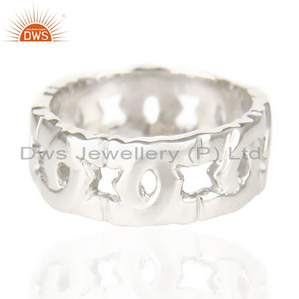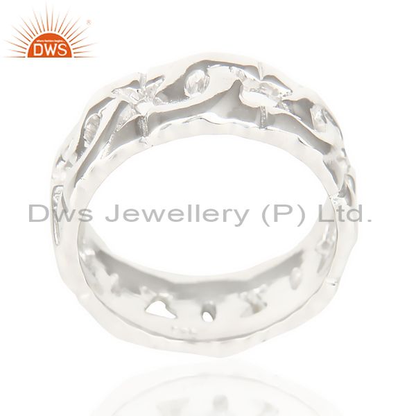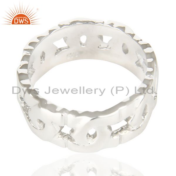White Rhodium 925 Sterling Silver Art Deco Band Ring Gift Jewelry