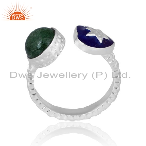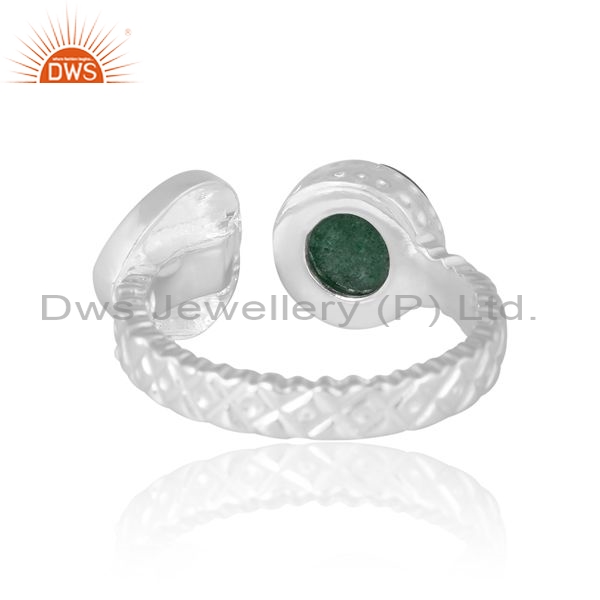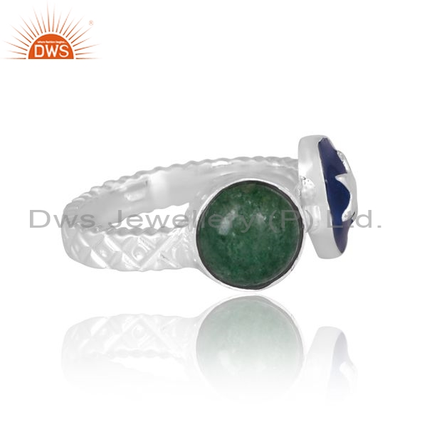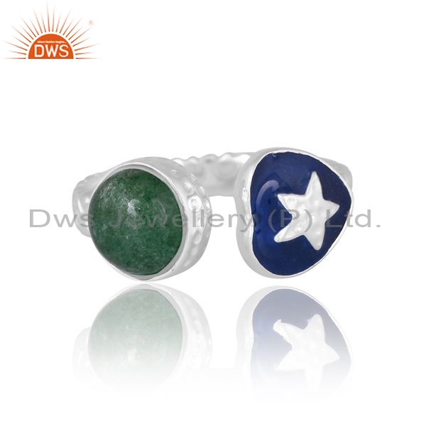 White Ring With Green Stone And Blue Enamel