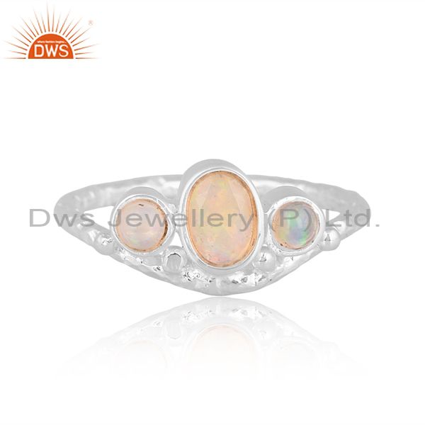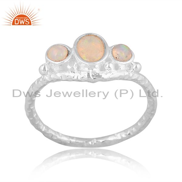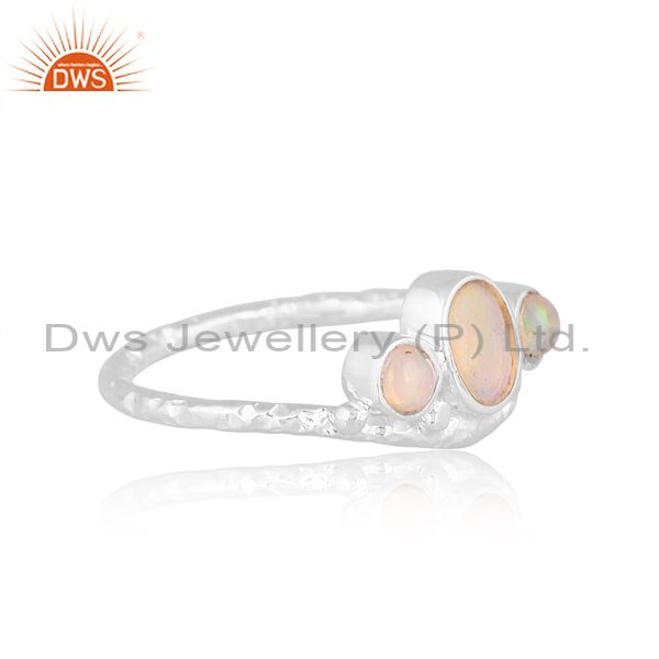White Sterling Silver Ring Wire Finish With Ethiopian Opal