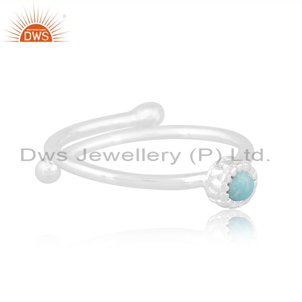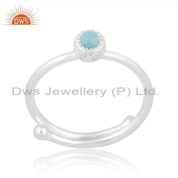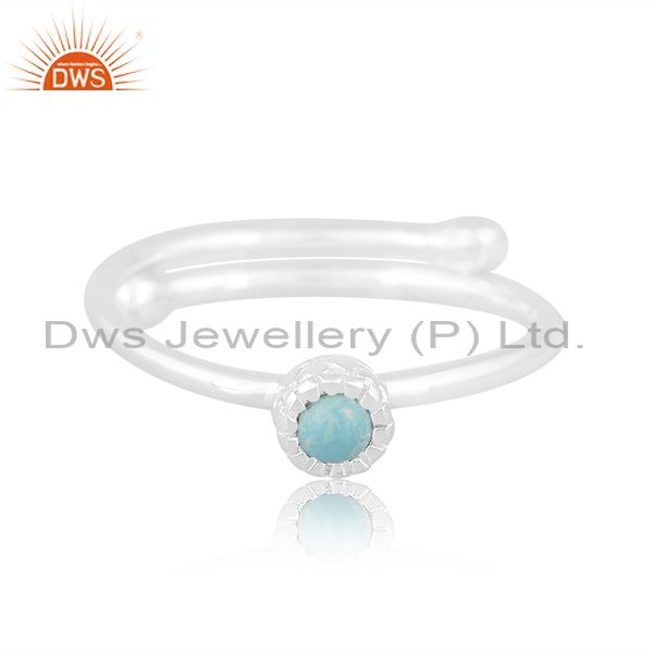 White Sterling Silver Ring With Arizona Turquoise Cabochon