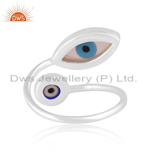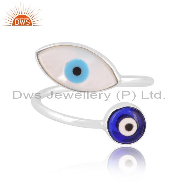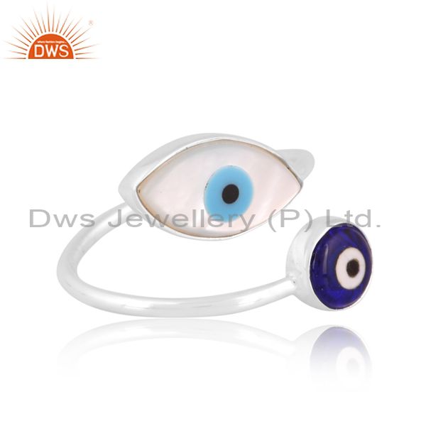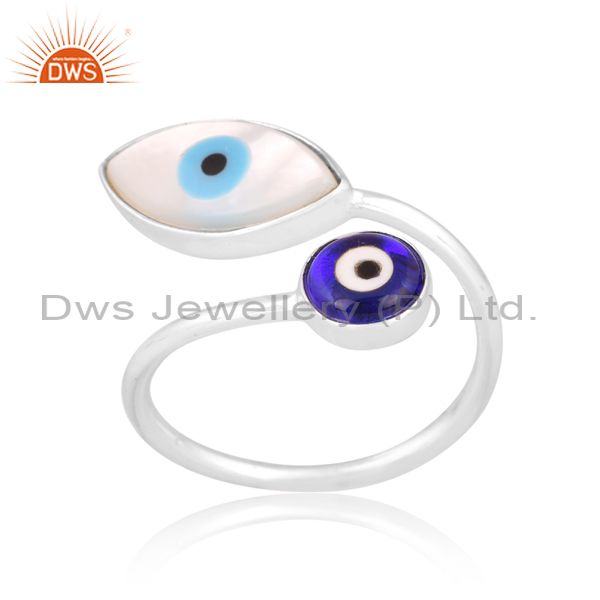 White Sterling Silver Ring With Blue Resin & Mother Of Pearl