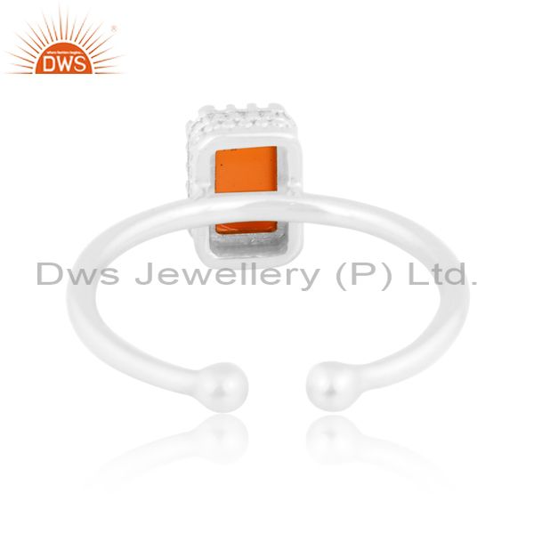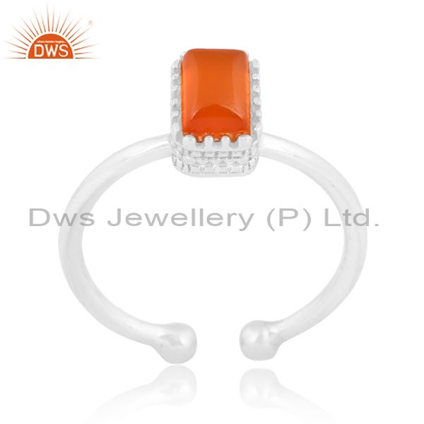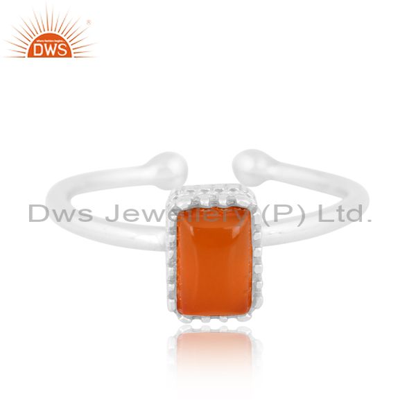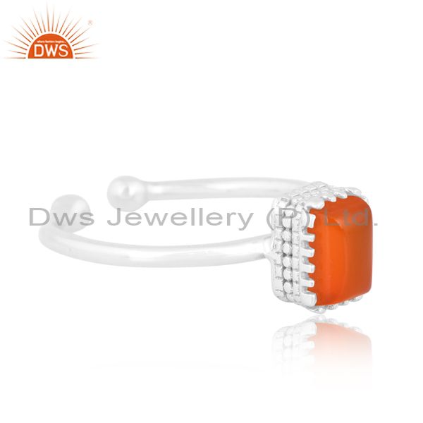 White Sterling Silver Ring With Carnelian Cabochon Gemstone