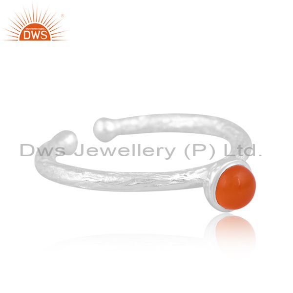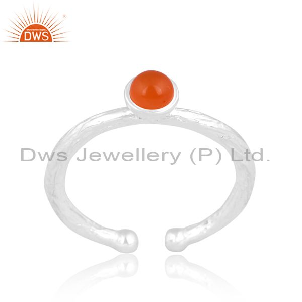 White Sterling Silver Ring With Carnelian Cabochon Round Cut