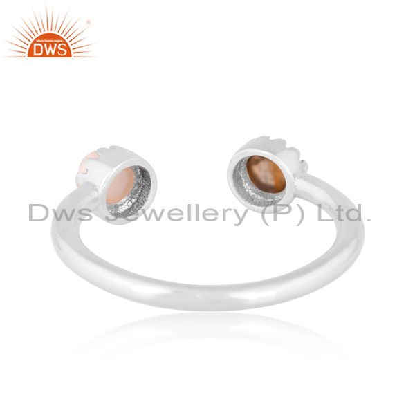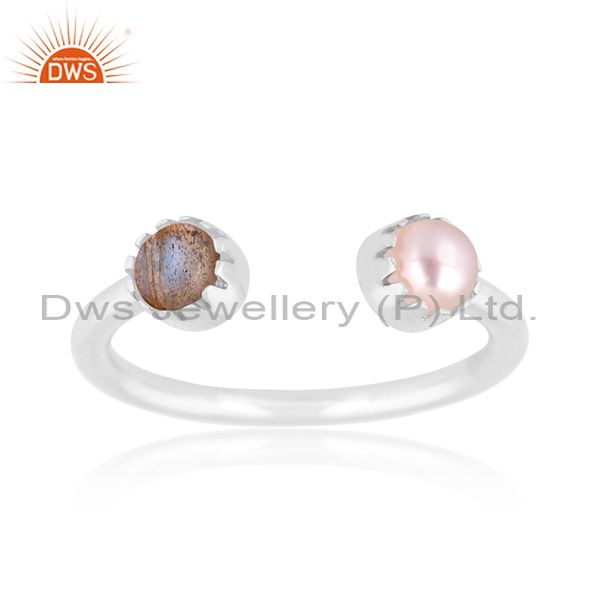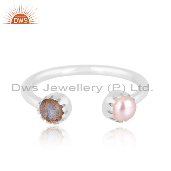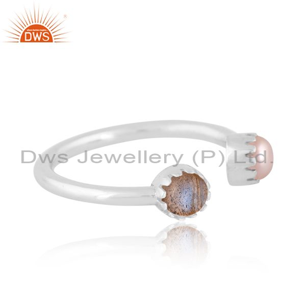White Sterling Silver Ring With Labradorite & Pearl Cabochon