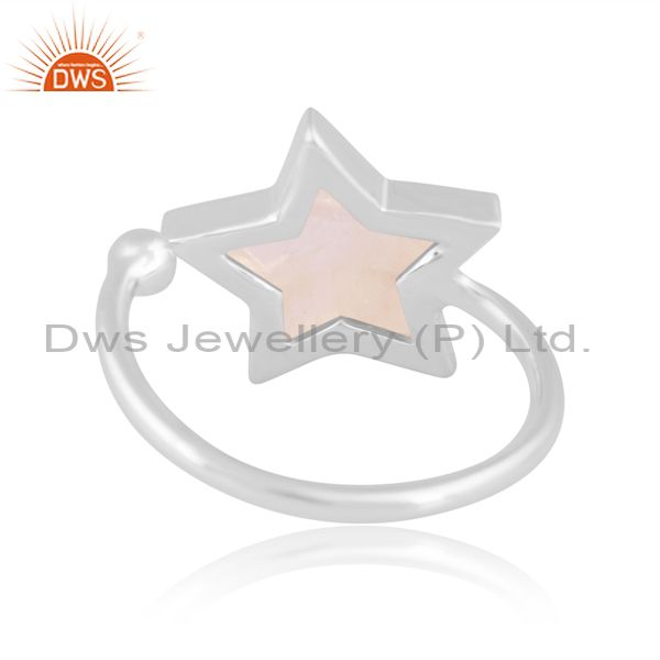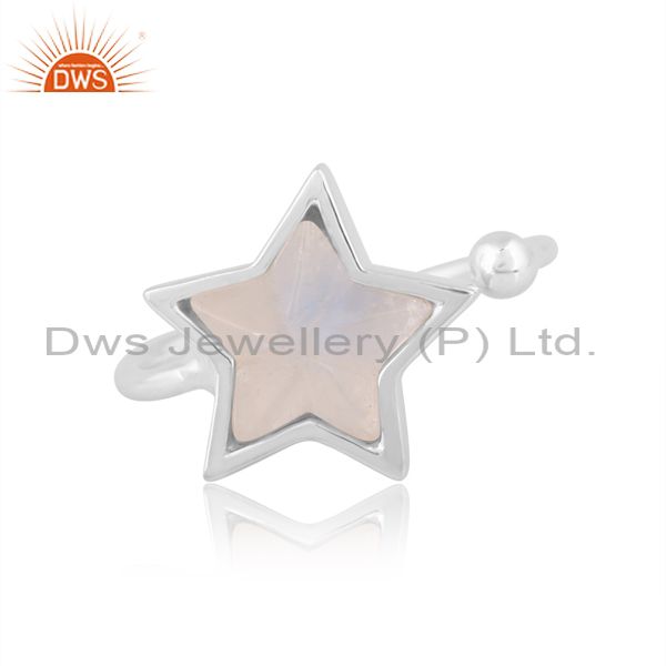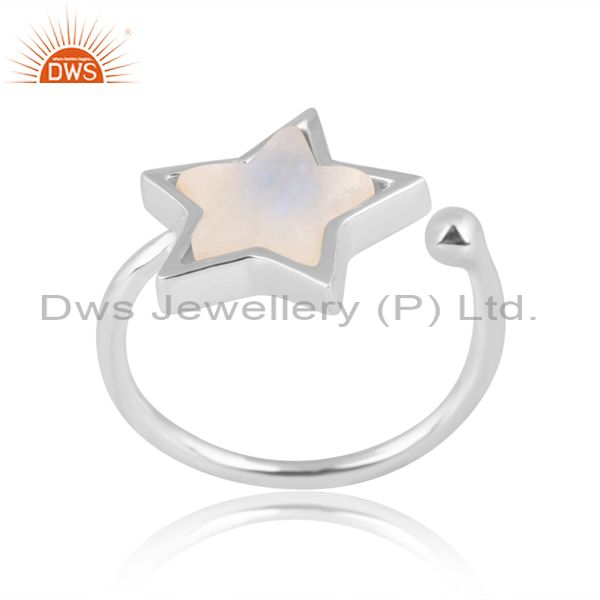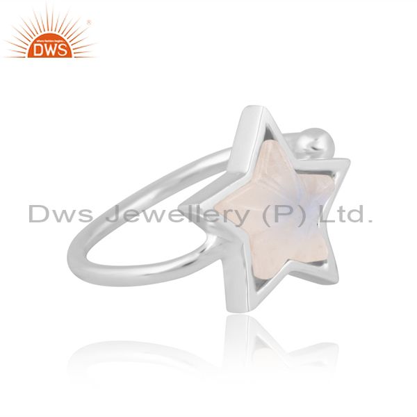 White Sterling Silver Ring With Plain Star Rainbow Moonstone