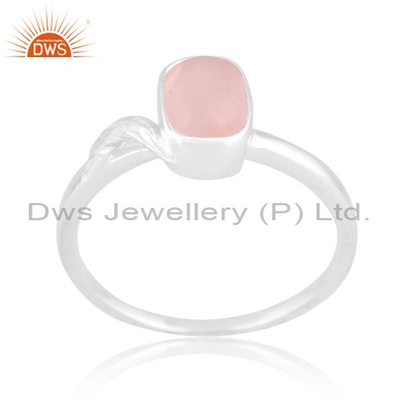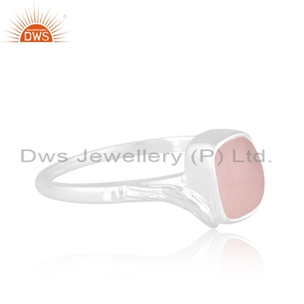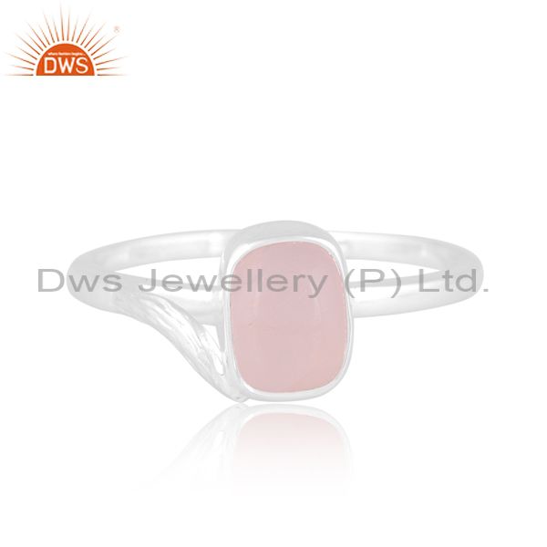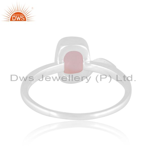 White Sterling Silver Ring With Rose Quartz Cabochon Octagon