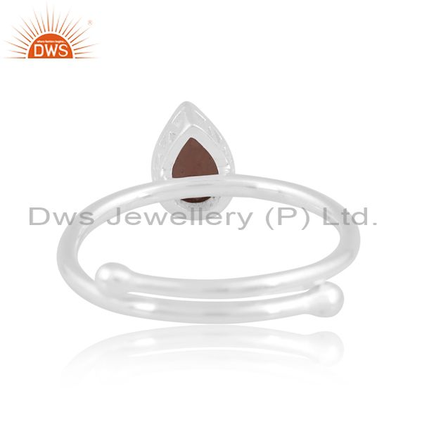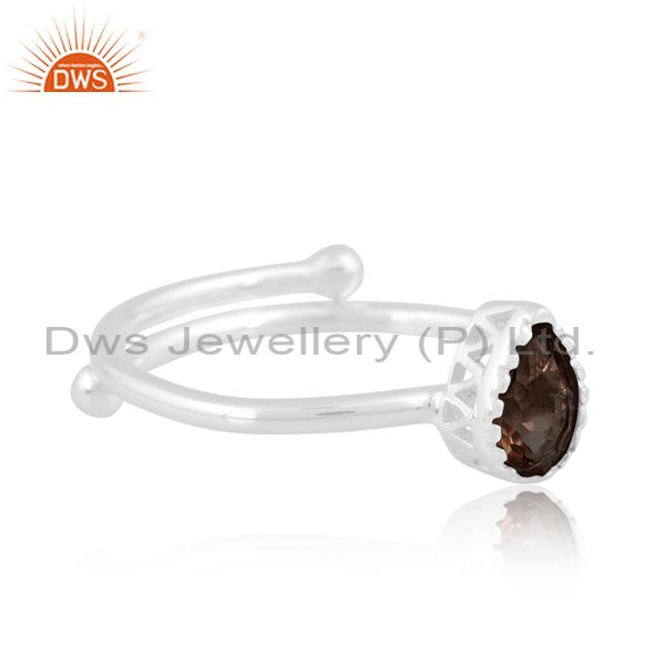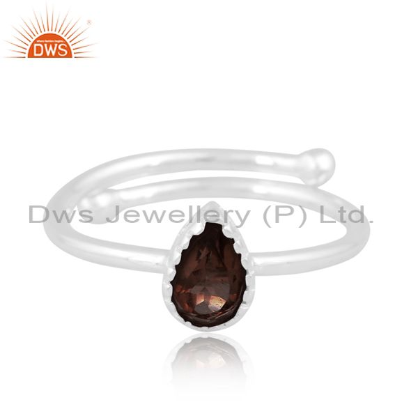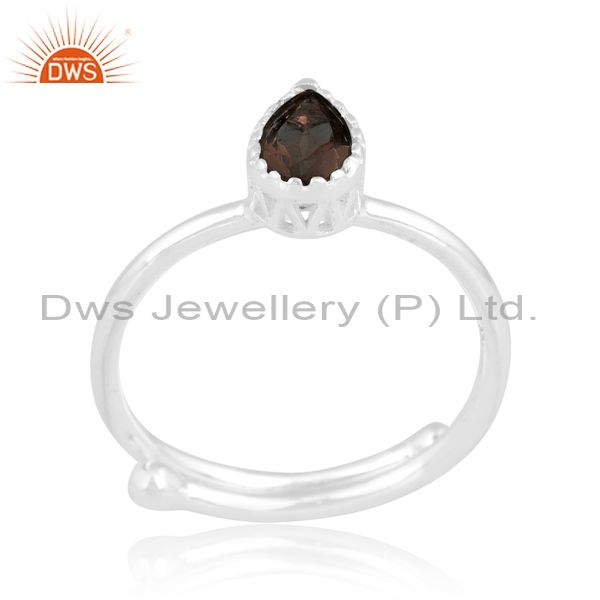 White Sterling Silver Ring With Smoky Cut Pear 0.39 Cts