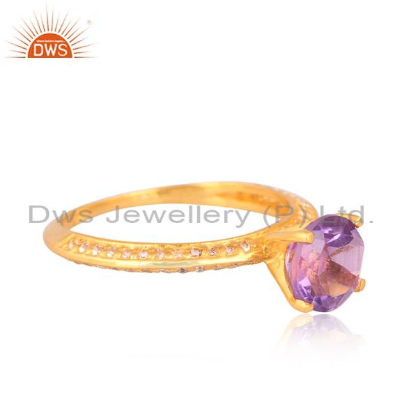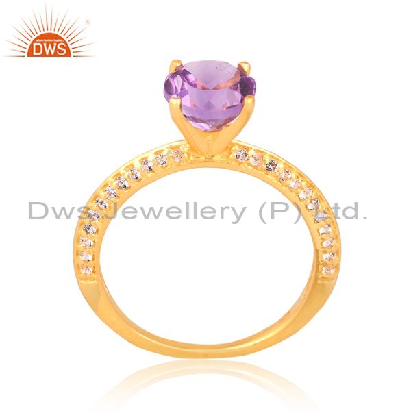 White Topaz And Amethyst Set Gold On Silver Fancy Crown Ring