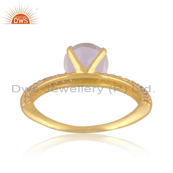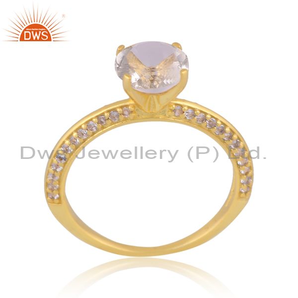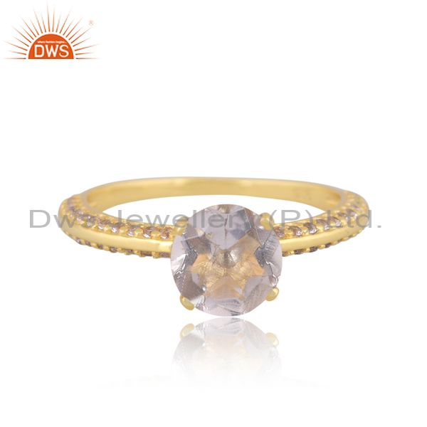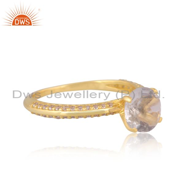 White Topaz And Green Amethyst Set Gold On Silver Crown Ring