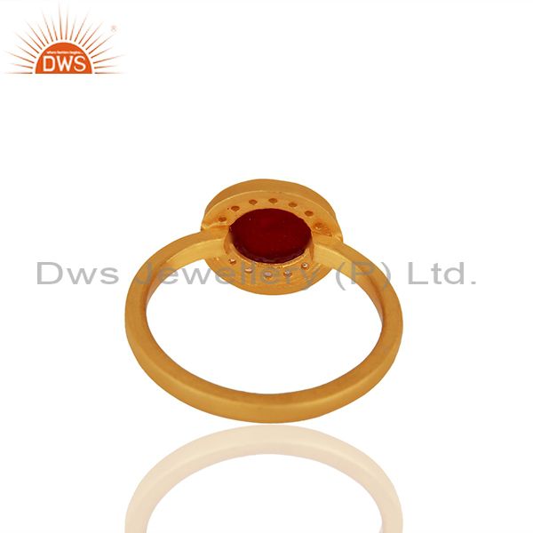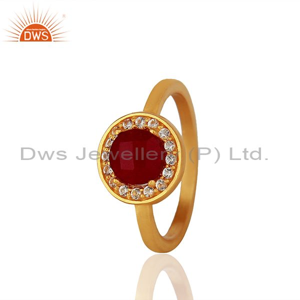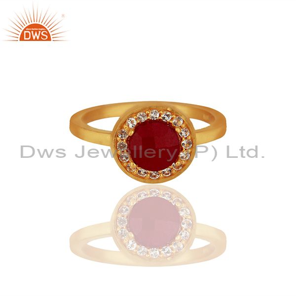 White Topaz and Ruby Gemstone 92.5 Silver Gold Plated Rings Jewelry