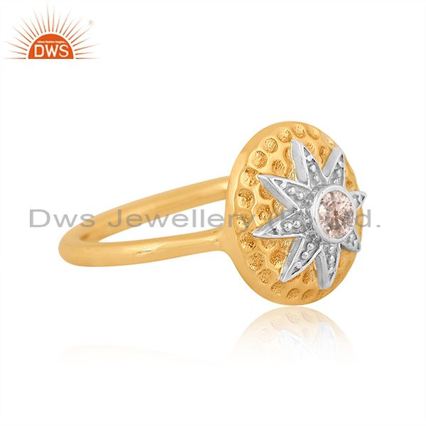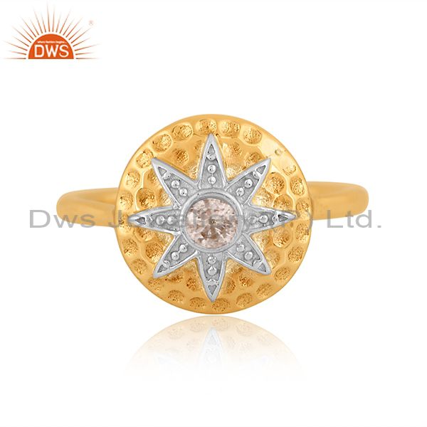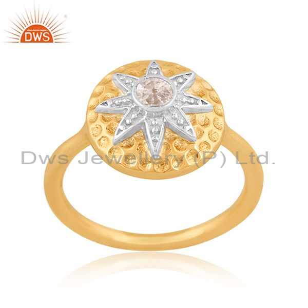 White Topaz Cut Round With Brass Gold & White Ring