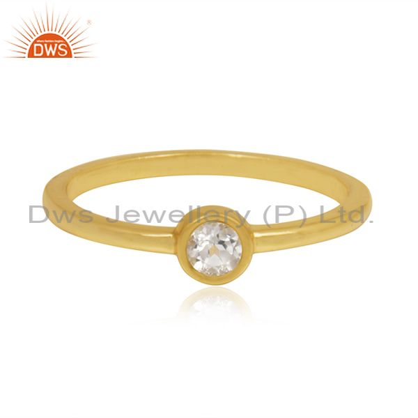 White Topaz Gemstone Sterling Silver Gold Plated Handmade Ring Manufacturer