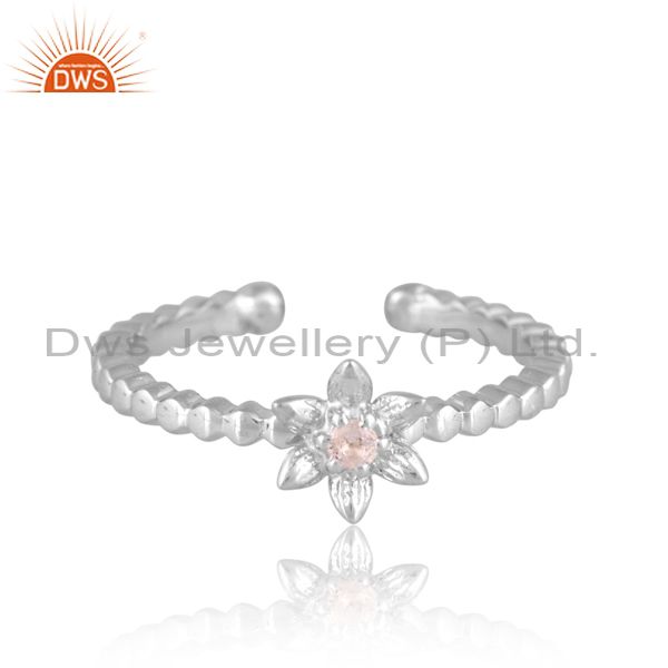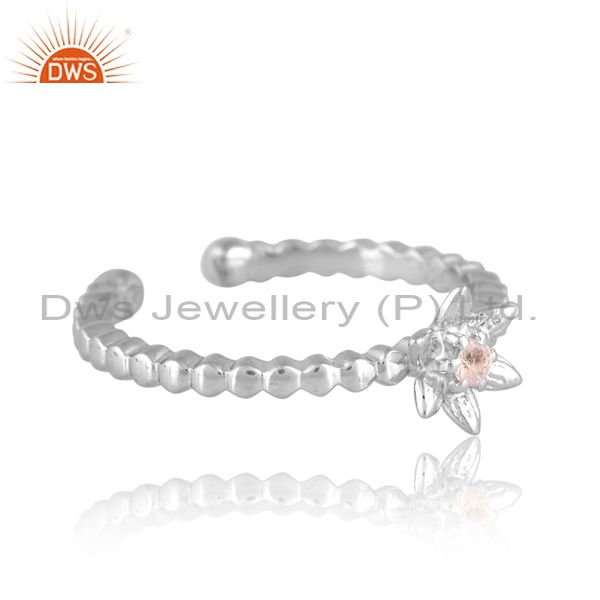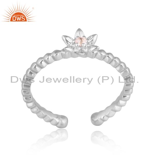 White Topaz Set 18K Gold On 925 Silver Handmade Twist Ring