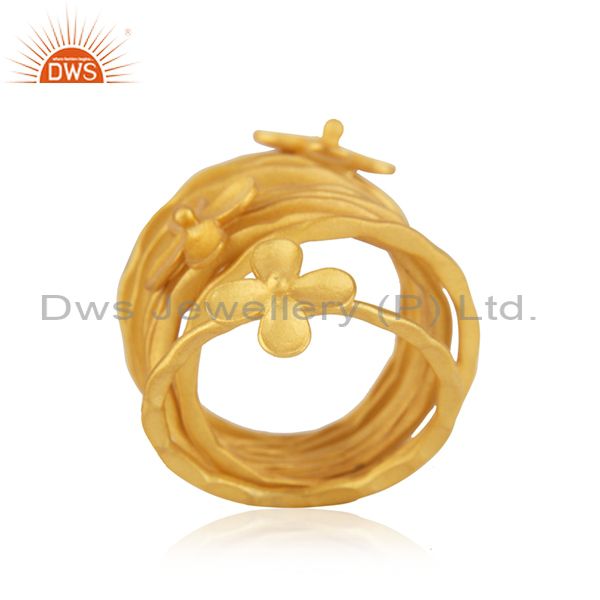 Wholesale Floral Brass Gold Plated Handmade 9 Rings Set Jewelry
