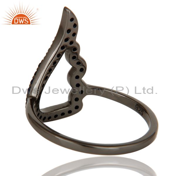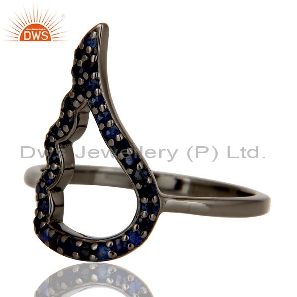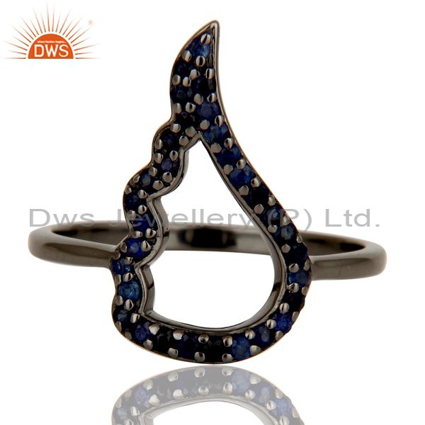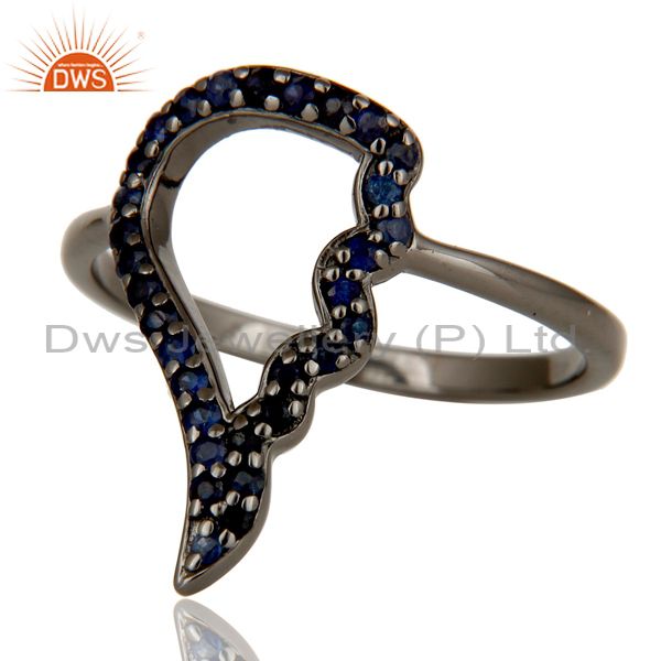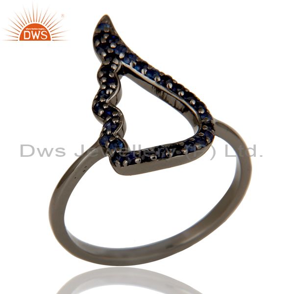 Wing Style Blue Sapphire and Oxidized Sterling Silver Jewelry Ring