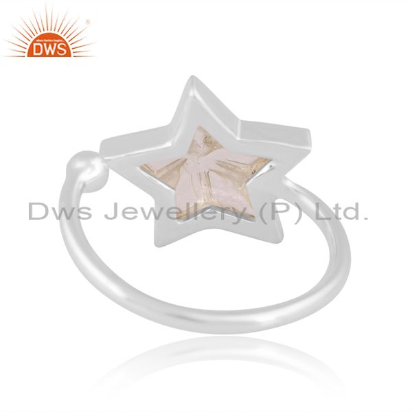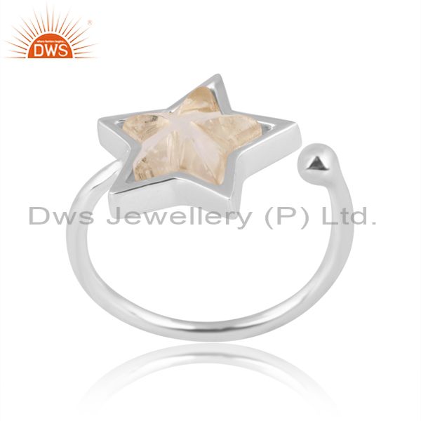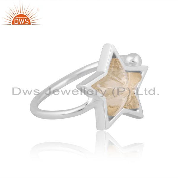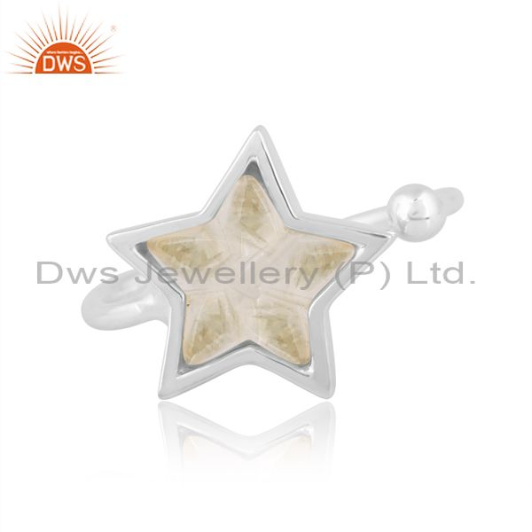 Wire Finish White Sterling Silver Ring With Green Amethyst
