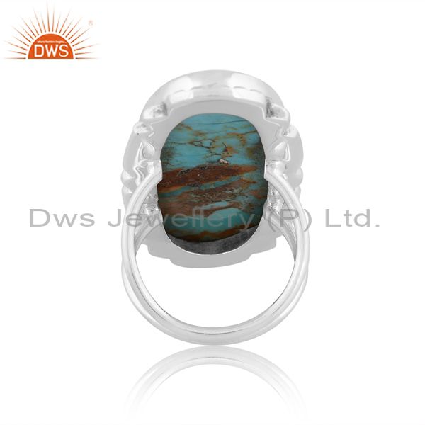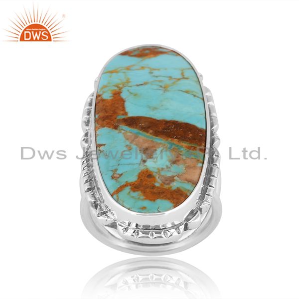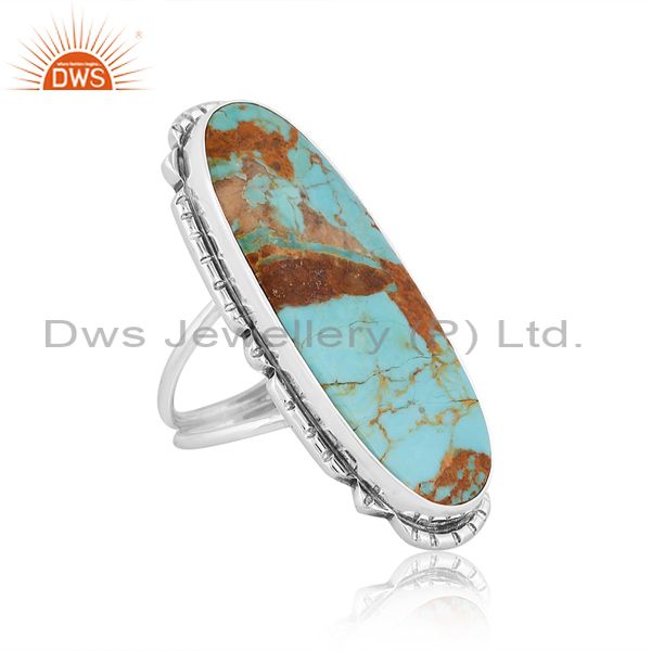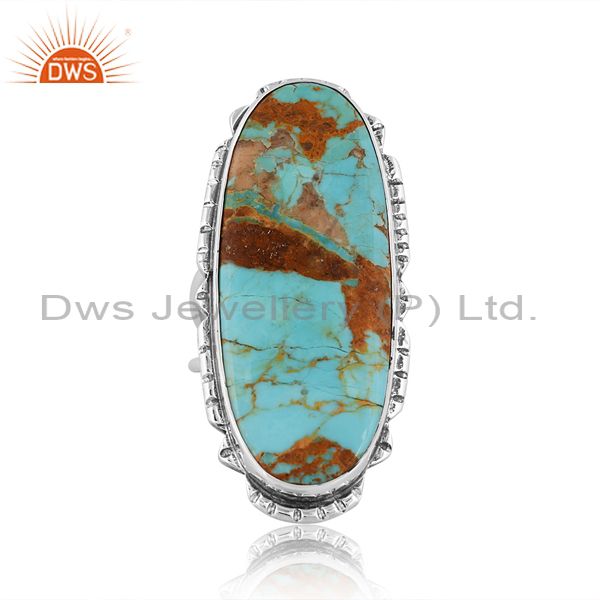 Wire Silver Oxidized Ring With Kingman Turquoise Gem