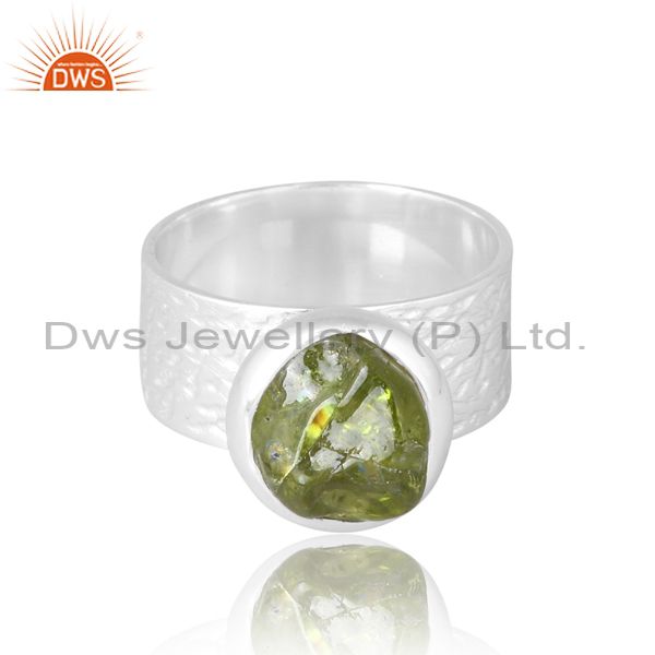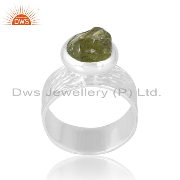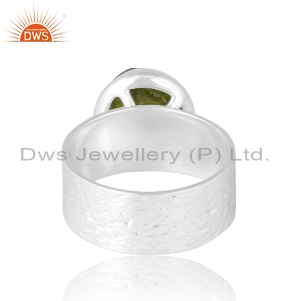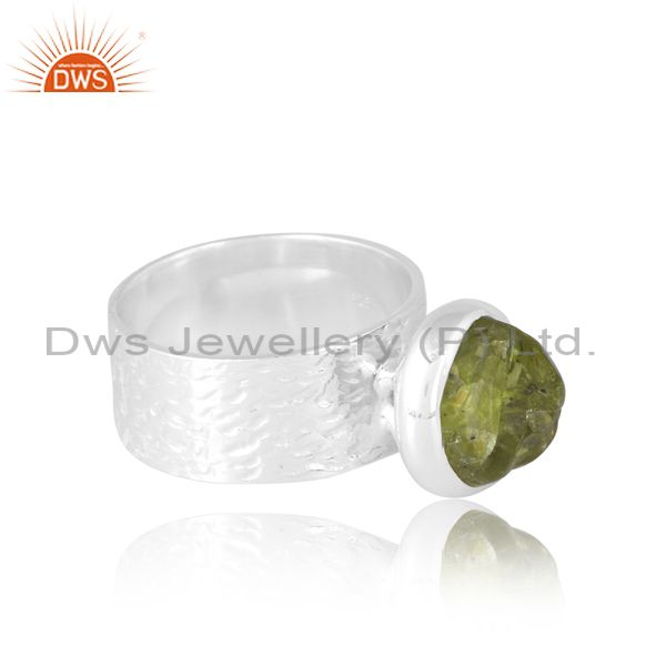 Women Men Wide Band Ring With Peridot Rough Unshape Stone