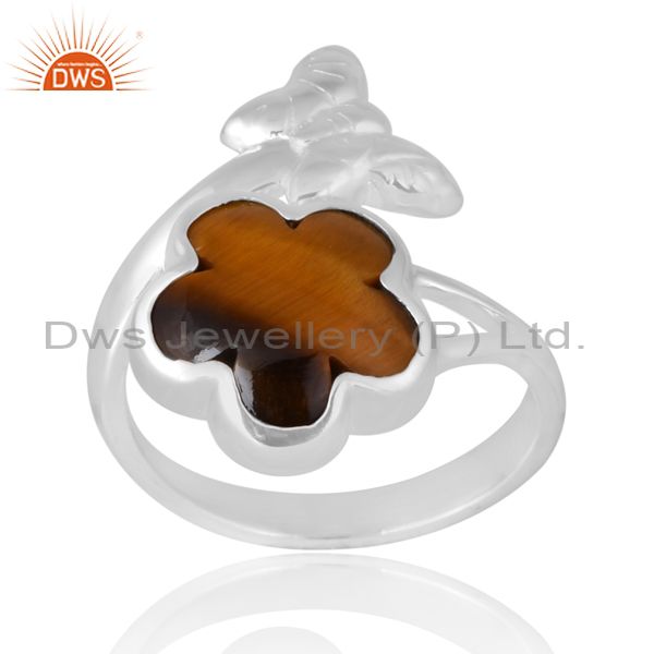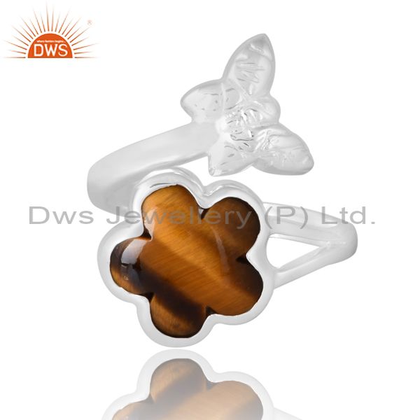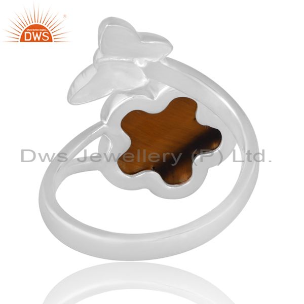 Women Valentine Floral Butterfly Ring With Tiger Eye Yellow