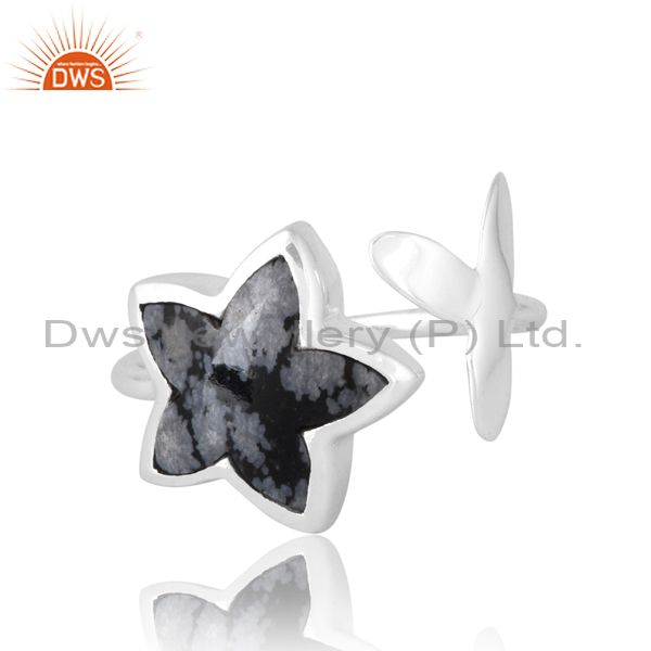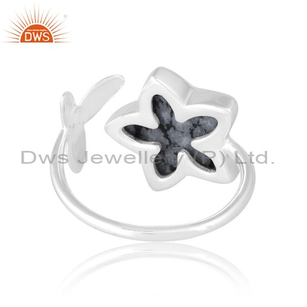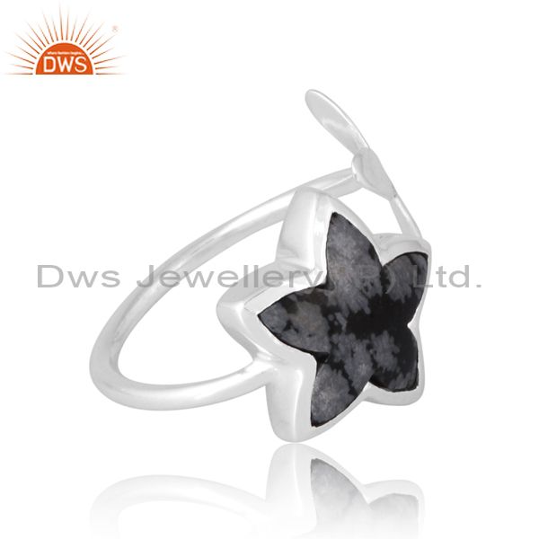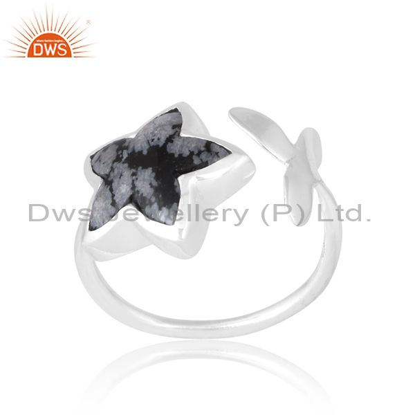 Women's Adjustable Snowflake Obsidian Moonflower Silver Ring