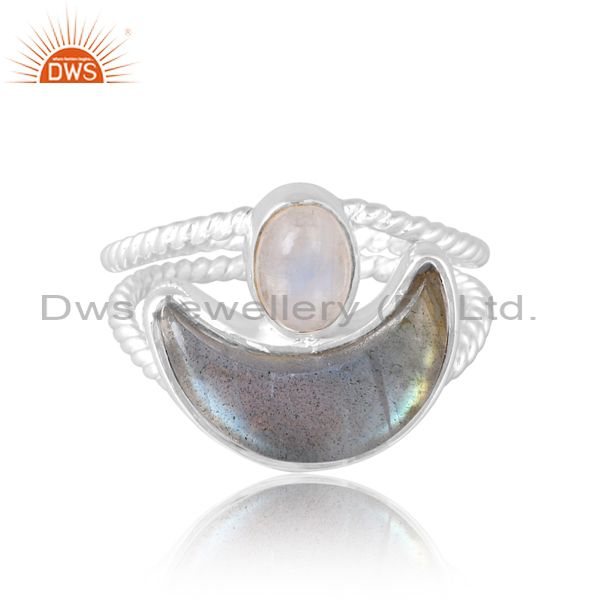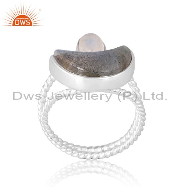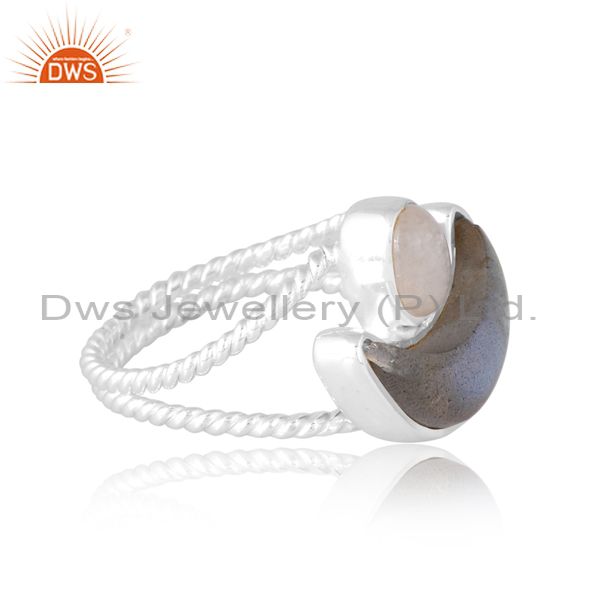 Women's Triple-Layer Wire Ring With D-Cut Labradorite Stone