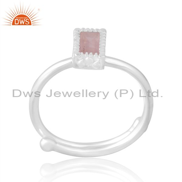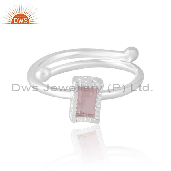 Women's Wire Border Ring In Rose Quartz Beguette Silver