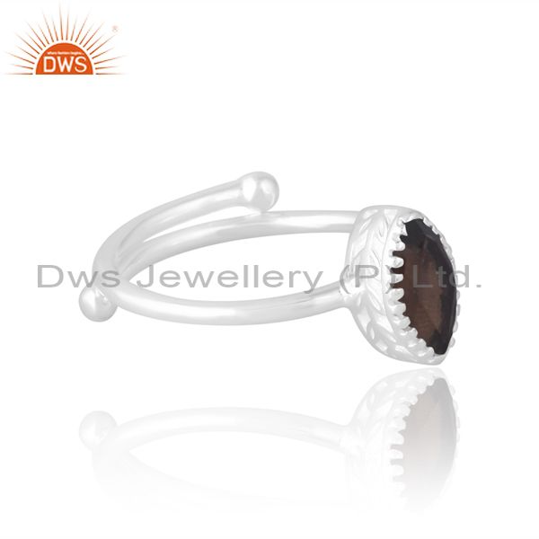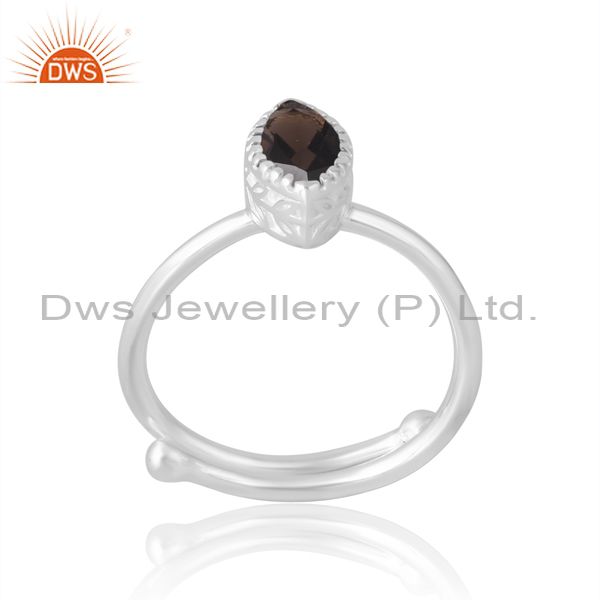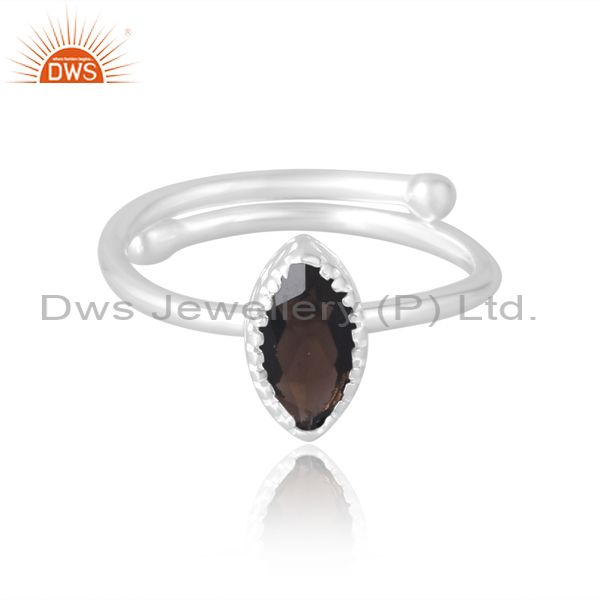 Women's Wire Border Ring In Silver Smoky Marquise Metal