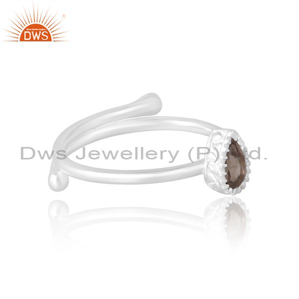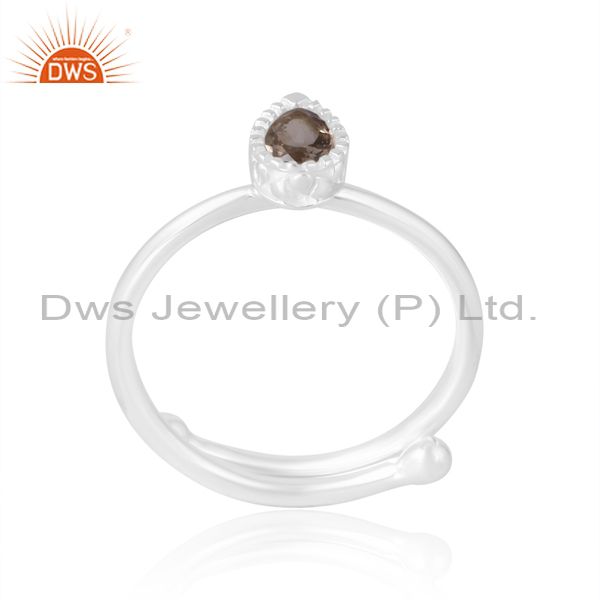 Women's Wire Border Ring In Smoky Oval In Silver Metal