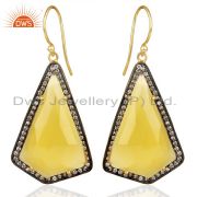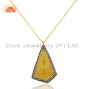 Yellow Chalcedony And CZ Fashion Ring In 18K Yellow Gold Over Sterling Silver