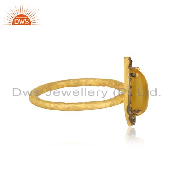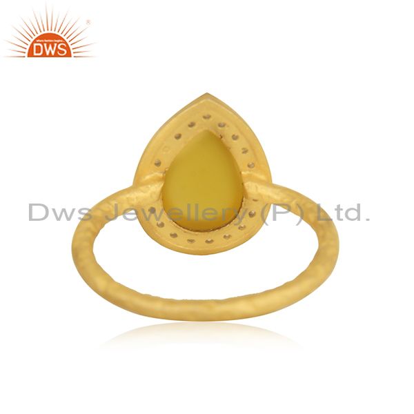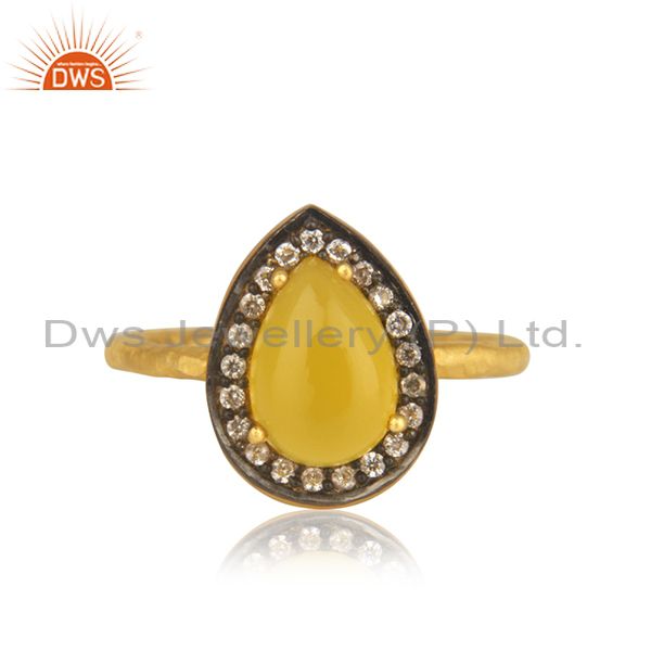 Yellow Chalcedony Gemstone 925 Silver Gold Plated Ring Manufacturer India