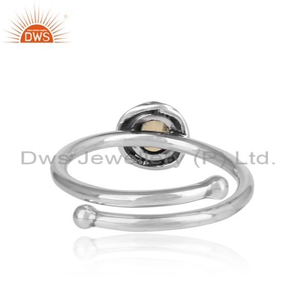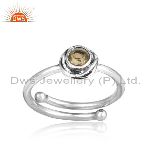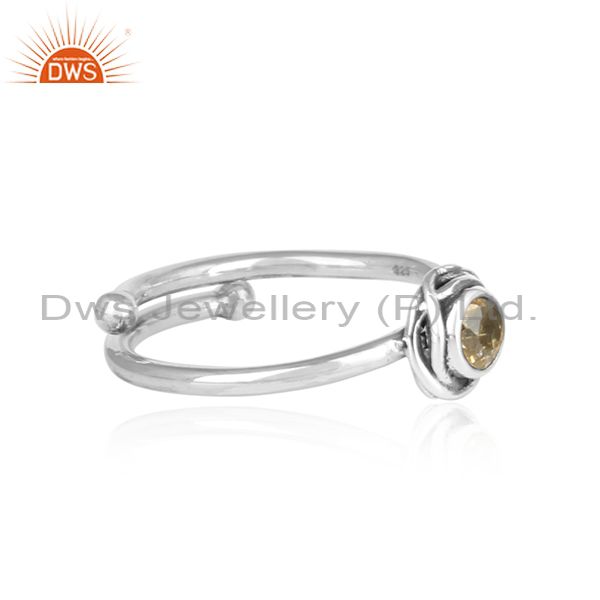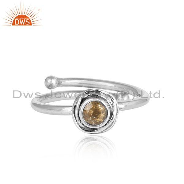 Yellow Citrine Wrapped Oxidized Sterling Silver Ring