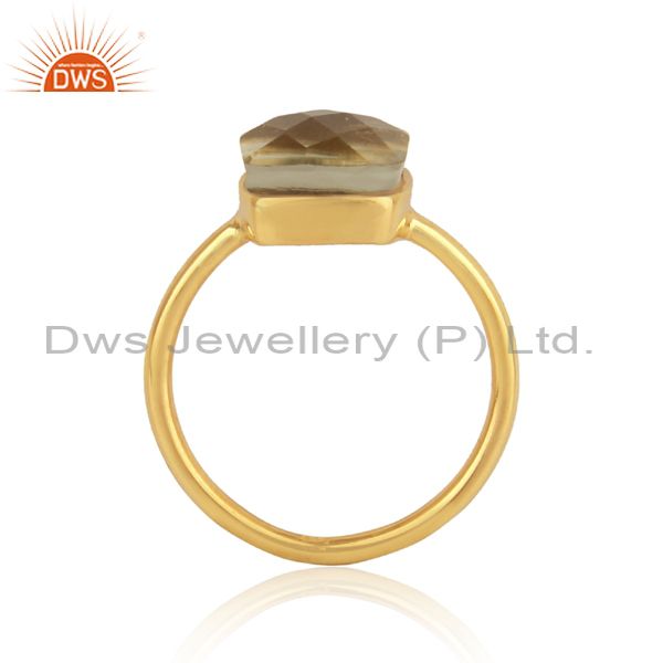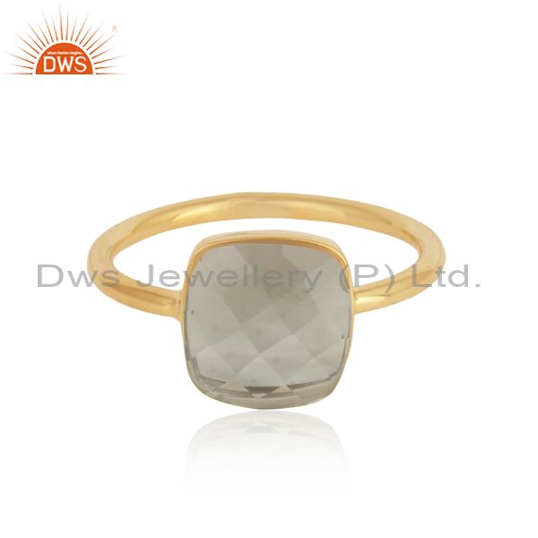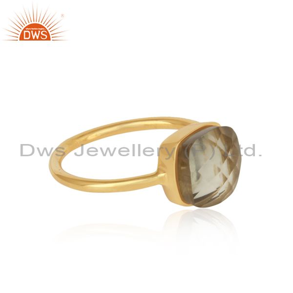Yellow Gold On Silver 925 Handmade Rings With Green Amethyst