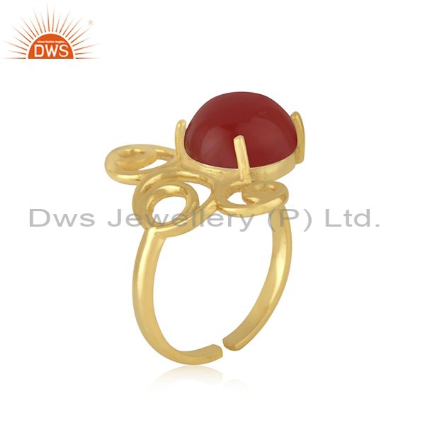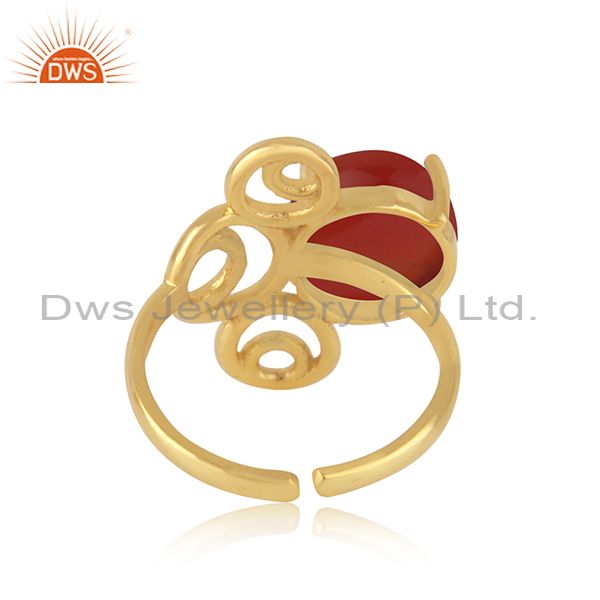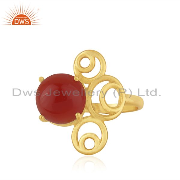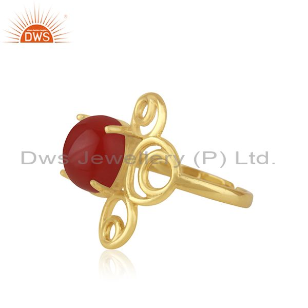Yellow GOld Plated 925 Silver Red Onyx Gemstone Ring Manufacturer India