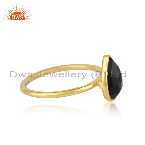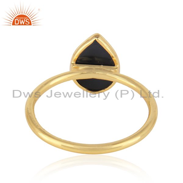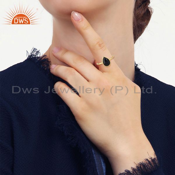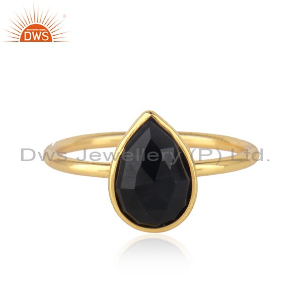 Yellow Gold Plated Silver Pear Shape Black Onyx Gemstone Ring Jewelry