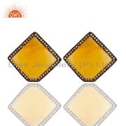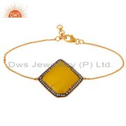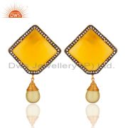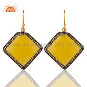 Yellow Moonstone & CZ 18K Gold On Sterling Silver Cocktail Fashion Ring With CZ