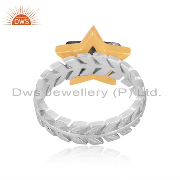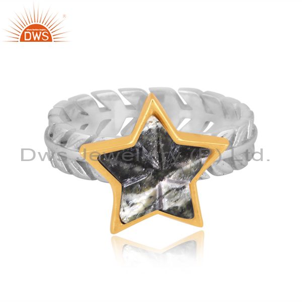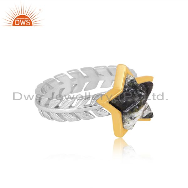 Zebra Jasper Set Gold On Fine 925 Silver Star Shaped Ring