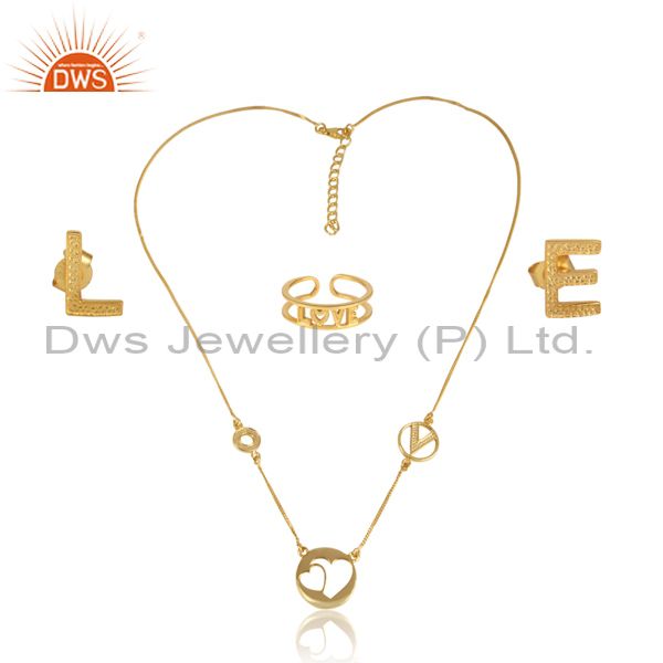 ‘Love’ Letters Gold On 925 Silver Statement Jewelry Set