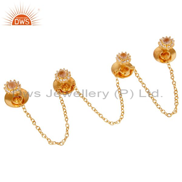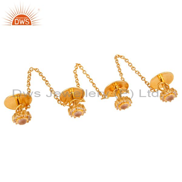 Rose Quartz And Zircon 18K Gold Plated Button Finding
